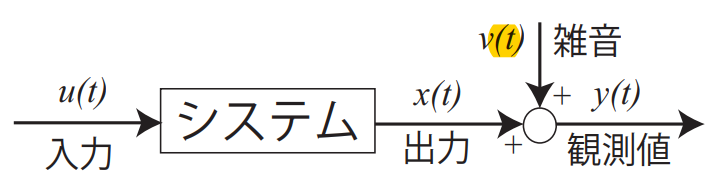 \[y_t=x_t+v_t\]一般に,観測雑音 $v_t$ はシステムの入力信号 $u_t$ とは,無相関である.すなわち,\(E[u_tv_t]=0\). ただし,$E[・]$ は期待値を意味する.