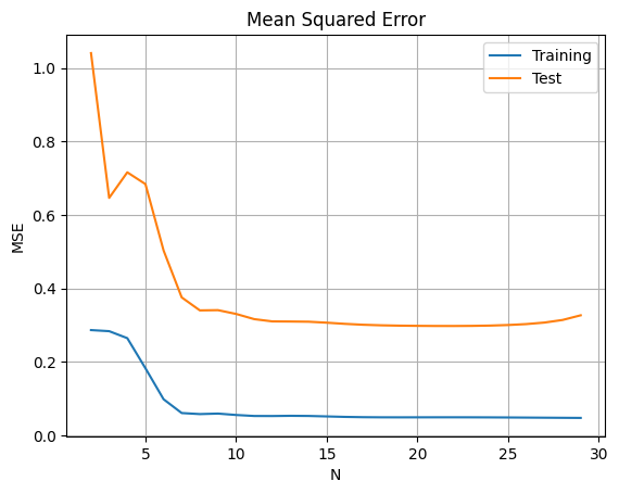 diff = DataFrame(data=result, columns=['Training','Test'], index=[n for n in range(2,30)])